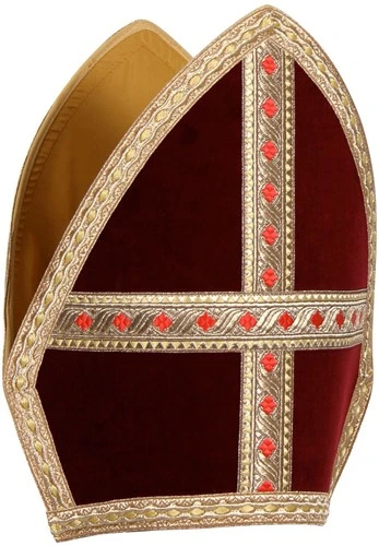 Mooie wijnrode mijter gemaakt van fluweel. De mijter is ook verkrijgbaar in de kleur rood.