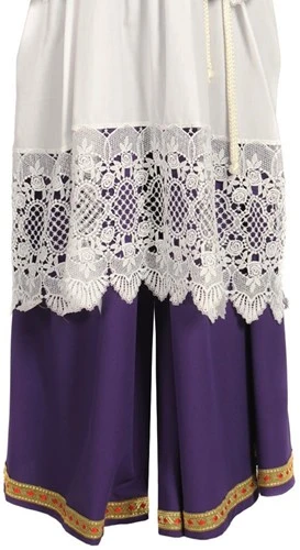 Met deze broekrok, in het paars, maak jij jouw sinterklaas compleet! De broekrok heeft weide broekspijpen welke zijn voorzien van een gouden detail met rood erin verwekt. Om de broekrok in breedte te verstellen zit er een koord in verwerkt. De broekrok is gemaakt van 100% polyester.