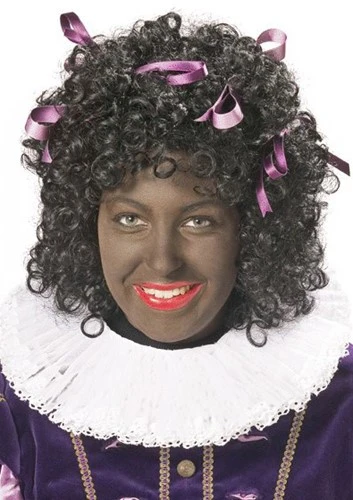 Een pietenpruik van zeer hoogwaardig synthetisch materiaal. Deze pruik heeft een erg fijn draagcomfort en is uitgevoerd in langere lengte en grovere krul. Zeer geschikt voor ‘coole pieten’ en ‘meisjes pieten’.